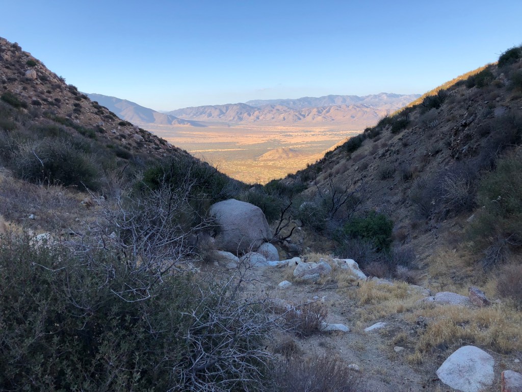 While we stayed in Palm Springs, I’d drive out to the desert to go for solitary runs. I’d drive the Ford Expedition off the highway on unpaved side road until I found a spot that looked interesting, park it off the road, and run the desert trails for an hour or so. I never saw anyone and hardly any animals either.