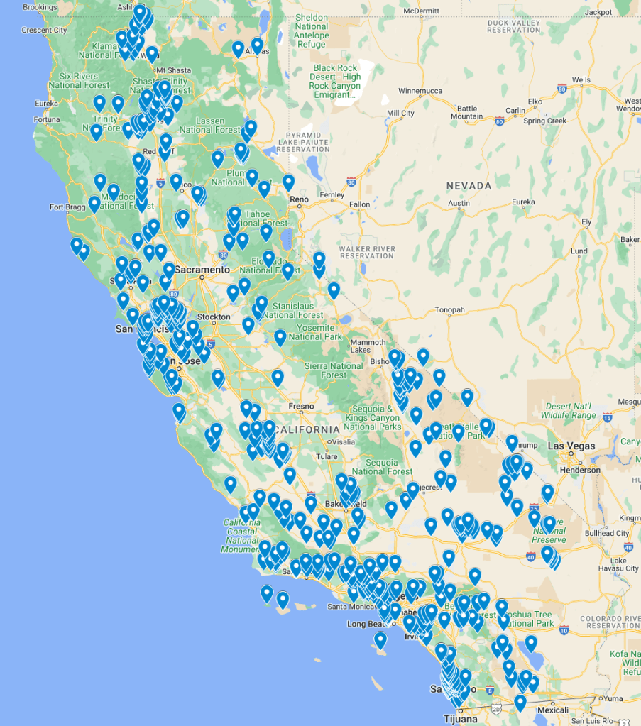 Map of California Fossil Sites