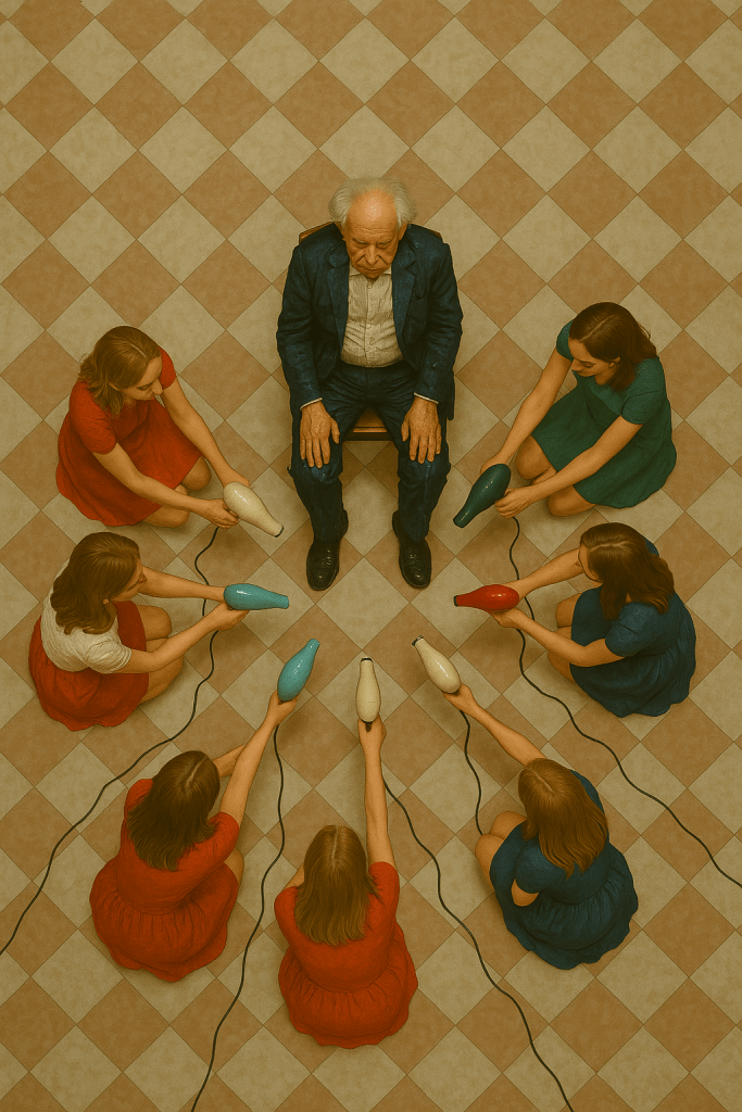 My other indelible memory of that conference was of [Karl] Popper’s dip in the Grand Canal. He slipped getting out of the motorboat at the boathouse of the Isola di San Giorgio and fell feet first into the canal, submerged up to his knees before being plucked out and set on the pier by two nimble boatmen. The hosts were mortified and ready to rush back to the hotel to get nonagenarian Sir Karl a dry pair of trousers, but the pants he was wearing was the only pair he’d brought—and he was scheduled to lead off the conference in less than half an hour! Italian ingenuity took over, and within about five minutes I enjoyed an unforgettable sight: Sir Karl, sitting regally on a small chair in the exact middle of a marble-floored, domed room (Palladio designed it) surrounded by at least half a dozen young women in miniskirts, on their knees, plying his trouser legs with their hairdryers. The extension cords stretched radially to the walls, making of the tableau a sort of multicolored human daisy, with Sir Karl, unperturbed but unsmiling, in the center. Fifteen minutes later he was dry and pounding his fist on the podium to add emphasis to his dualistic vision.