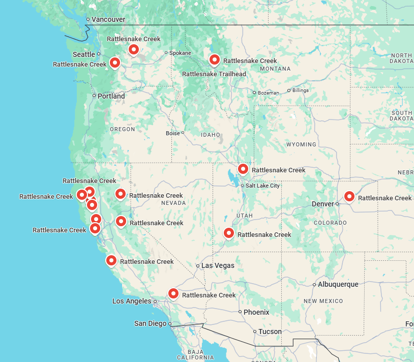 My neighbor told me about a swimming hole that nobody knows about. “It’s on Rattlesnake Creek,” he said. Armed with this information, I went to Google Maps, only to discover that he had given me an ambiguous address: There are at least a dozen Rattlesnake Creeks in California. What is it about rattlesnakes that make them such an attractive animal to name creeks after? Is it that rattlesnake encounters are memorable, or is it a way to keep others away from beautiful creek sides and swimming holes?