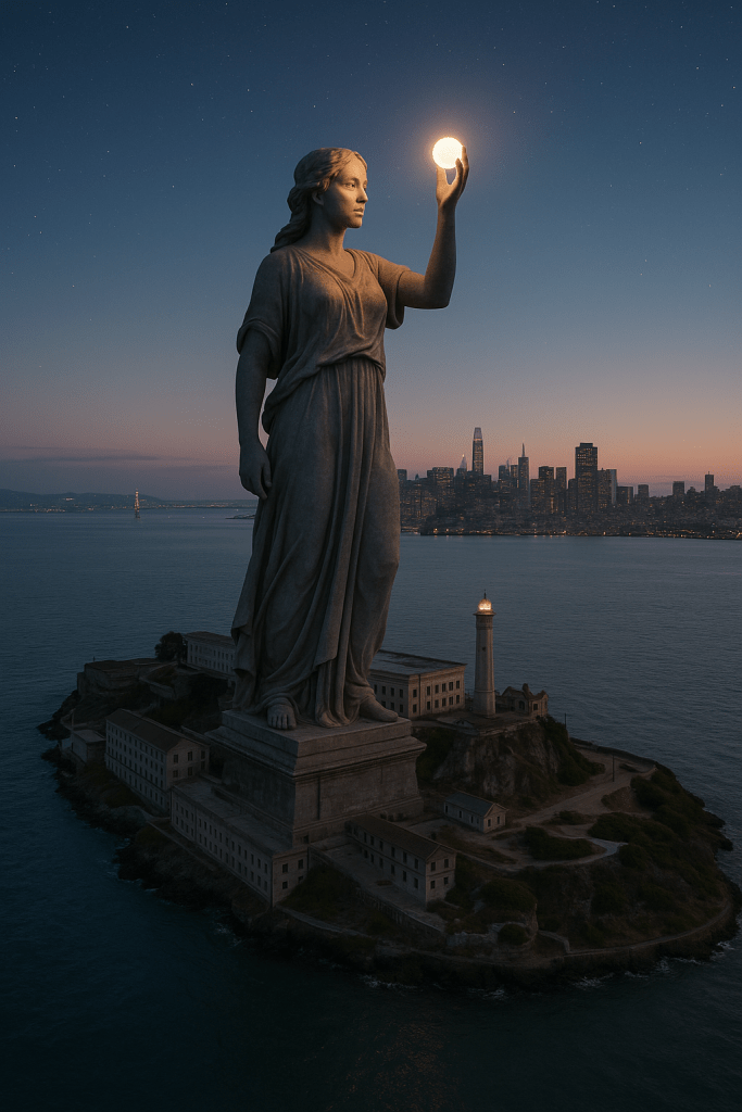 Here is one idea for Alcatraz and here‘s another one. Here are some older designs for the island. Any of them would elevate San Francisco Bay beyond mere preservation and would be public money well spent. It’d also be possible to find a private donor. Why not have a ranked choice vote among so that San Franciscans can choose a design?